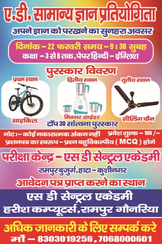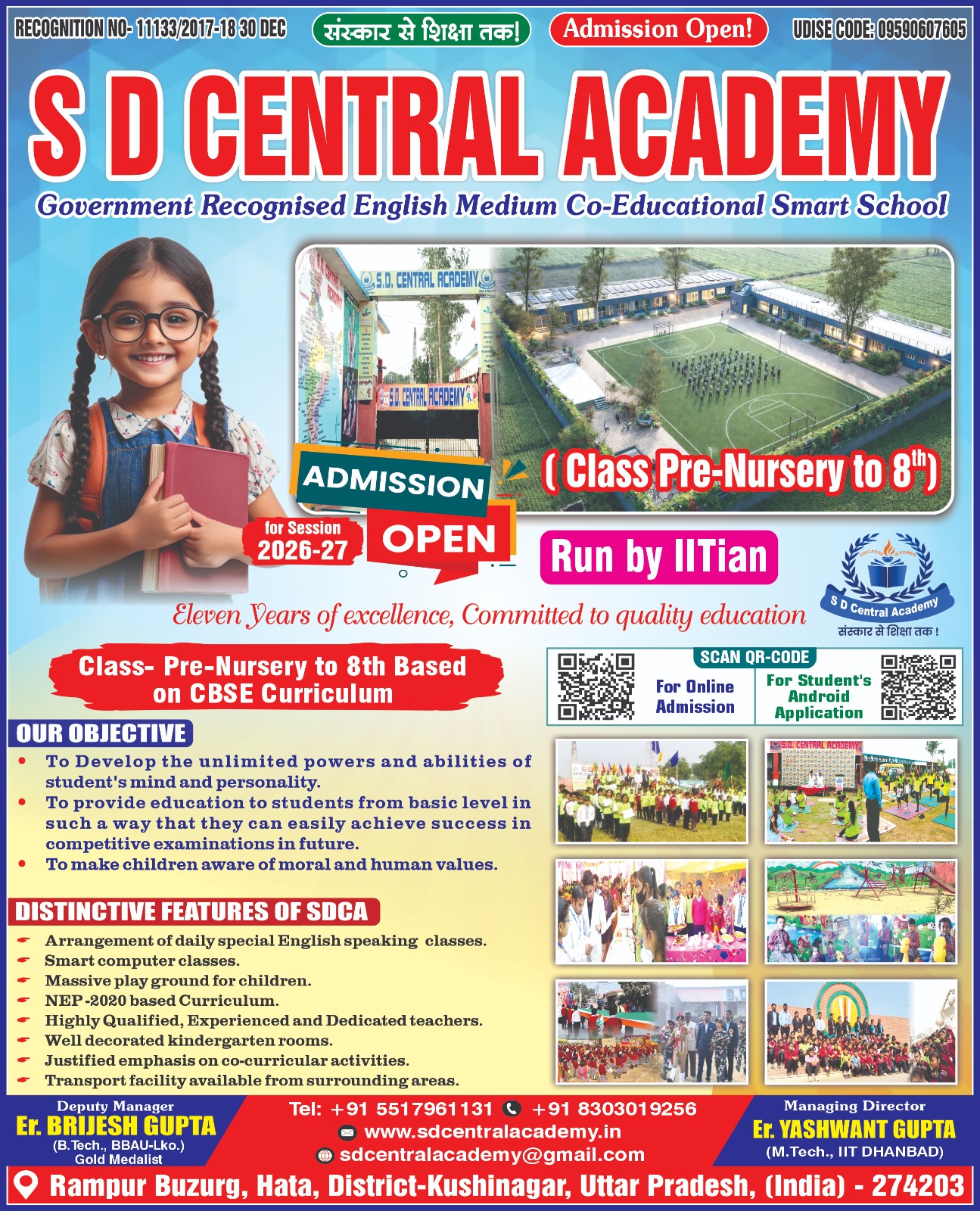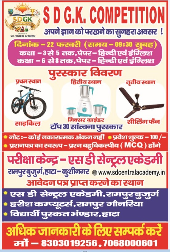 RAMPUR BUJURG, HATA, DISTRICT- KUSHINAGAR, UTTAR PRADESH, INDIA, 274203 (UDISE CODE: 09590607605 ; RECOGNITION NO- 11133/2017-18 30 DEC)